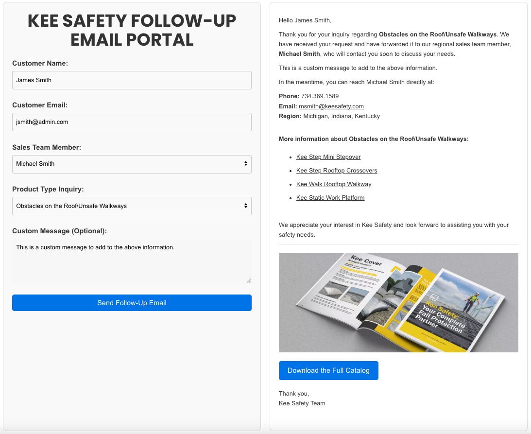 Reduced drop-off: Keeps Kee Safety top-of-mind during the most critical stage — right after inquiry.